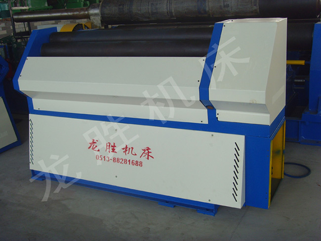 該機結構形式為三輥非對稱式上輥為主傳動下輥垂直升降運動,以便夾緊板材,并通過下輥齒輪與上輥齒輪嚙合,同時作為主傳動;邊輥作傾升降運動,具有預彎和卷圓雙重功能。結構緊湊,操作維修方便。