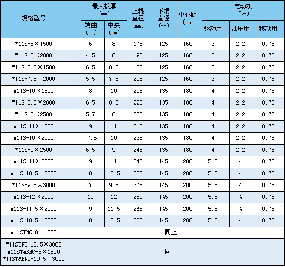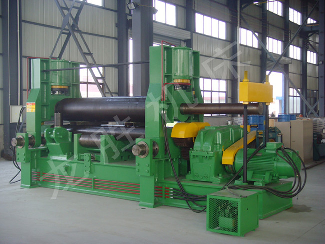 該機屬于液壓型三輥卷板機,用于常溫狀態下將各種容器用碳鋼、低合金鋼一次上料后不需調頭即完成板材端部預彎、卷圓和矯圓等工序。