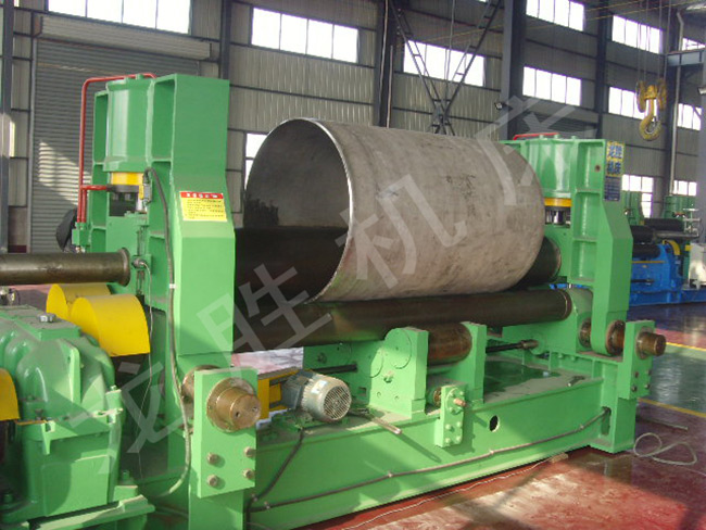 該機屬于液壓型三輥卷板機,用于常溫狀態下將各種容器用碳鋼、低合金鋼一次上料后不需調頭即完成板材端部預彎、卷圓和矯圓等工序。